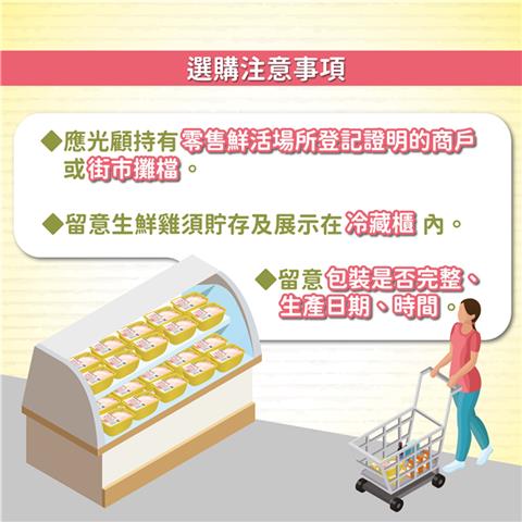 “生鲜鸡”是即日屠宰即日销售的鲜活食品,在内地完成屠宰後立即以冷链运输车运载,由出厂至上市销售全程冷链配送,以确保安全卫生。为方便本澳消费者识别,“生鲜鸡”上须打上印有屠宰日期的鼻环,外包装上亦须印有产品资讯、生产日期及时间等,且须贮存及展示於冷藏柜内。零售时必须保留生鲜鸡的原包装,并根据食用安全及卫生要求销售,以保障消费者的食用安全。市政署提醒消费者应光顾持有零售鲜活食品场所登记证明的商户或街市摊挡,购买前先检查包装是否完整及留意生产日期及时间。