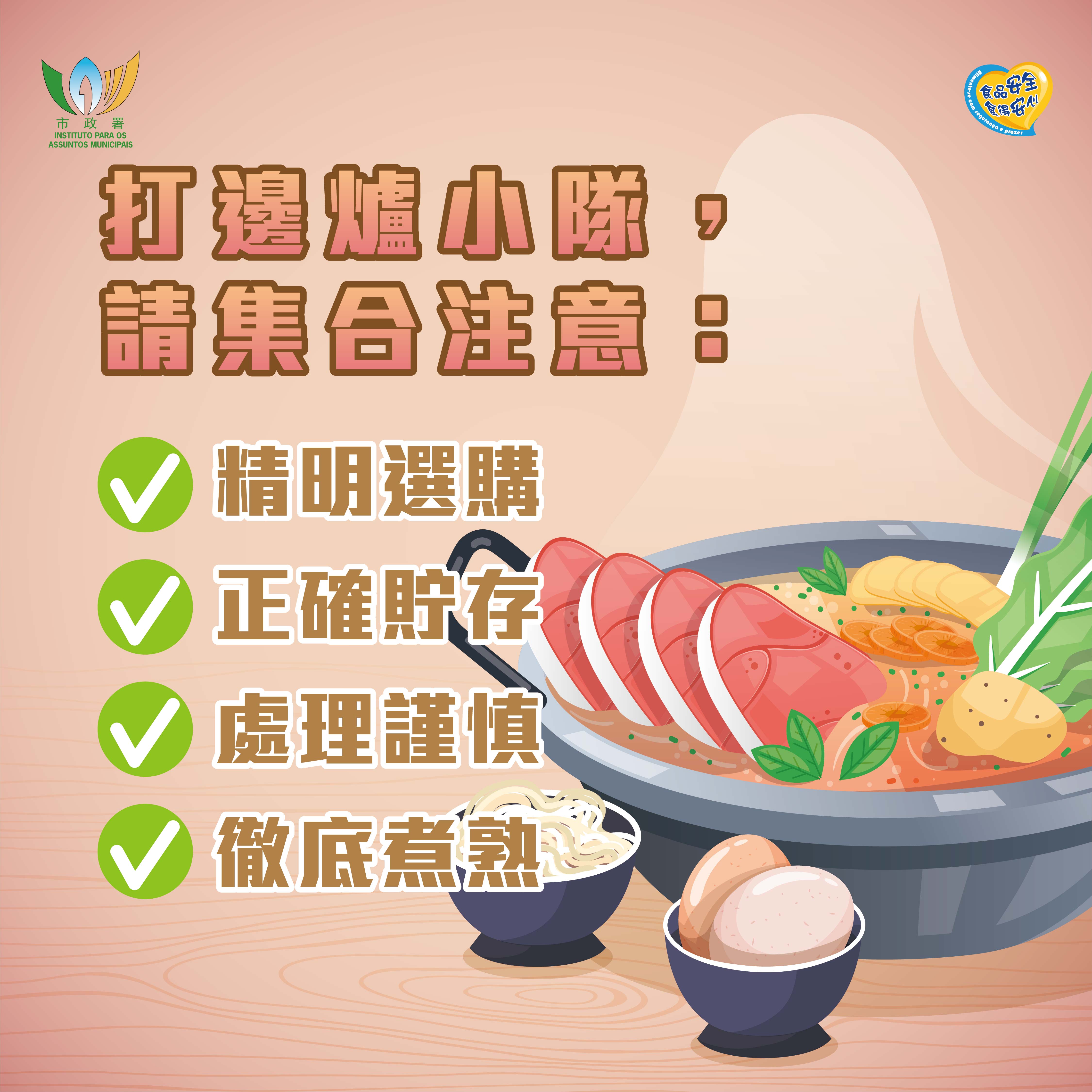 秋高氣爽,加上假日眾多,本專頁集合了秋冬季期間的相關食安常識及宣傳單張供市民大眾查閱,提醒公眾注意食品衛生安全,以預防食源性疾病的發生。 科普文章: 歡渡中秋吃月餅冰皮月餅消費與食用提示大閘蟹的監管與食用風險燒烤時 注意食品衛生安全燒烤肉類與多環芳香族碳氫化合物(PAHs)火鍋安全小貼士福禍相連的臘味?認識諾如病毒 宣傳單張: 安心享用中秋月餅安心燒烤安心享用火鍋安心享用盆菜 業界指引: 製作及供應燒烤食品的安全衛生指引處理及供應火鍋食材的衛生指引製作及售賣盆菜的衛生指引
