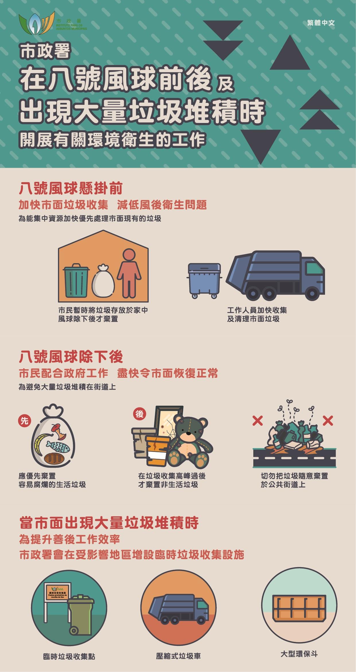 市政署在八號風球前後環衛工作