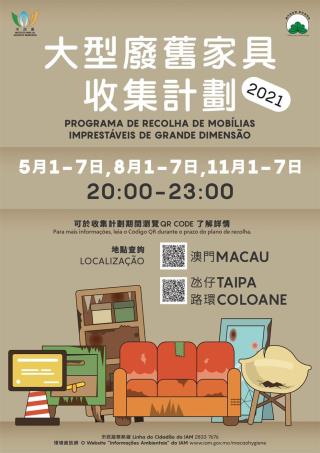 为方便市民弃置大型废旧家具,市政署将於五月一日至七日期间,晚上八时至十一时,於本澳各区设置六十个临时大型废旧家具收集站。